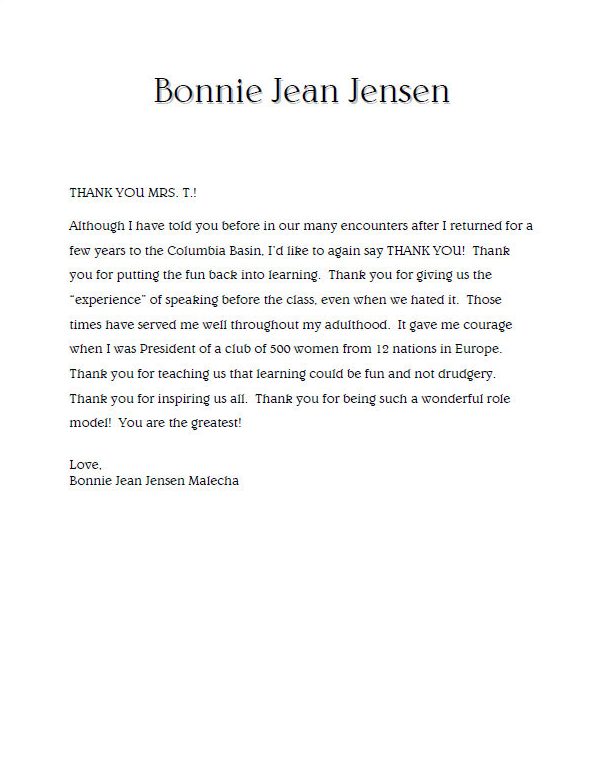 Tribute to Mrs. Thompson