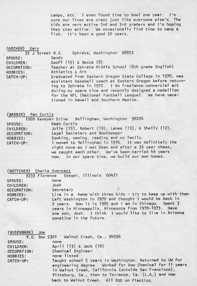 20th Class Reunion